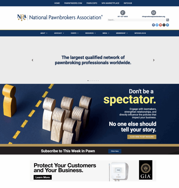 Pawnbrokers turn to the National Pawnbrokers Association for unparalleled education and information to stay competitive, efficient, highly productive and ahead of the curve. NPA content – whether served up digitally, in print or through in-person conferences and events – is a highly trusted authoritative resource that is read, shared and saved. It is an ideal environment for marketers who want to ensure their marketing message is seen.